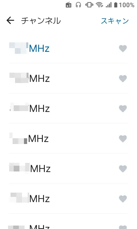 また、チャンネルの一覧より周波数をタップして選局することもできます。