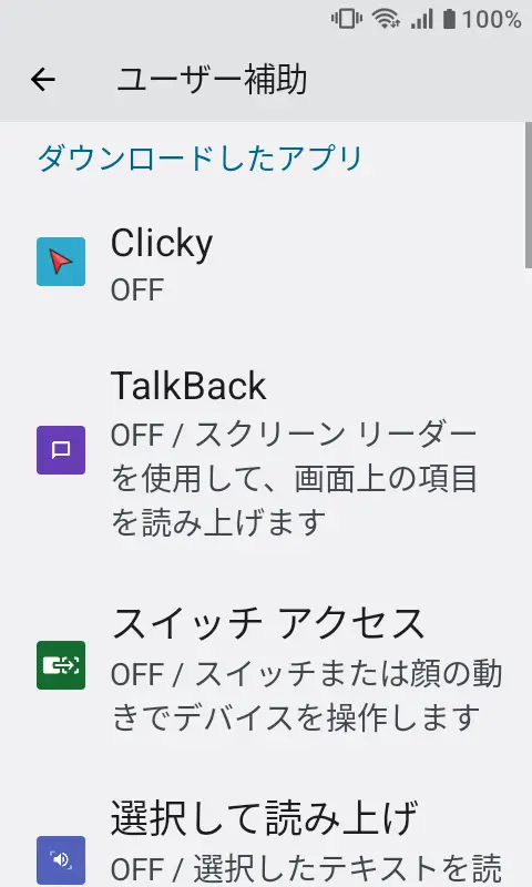 MIVE ケースマ→設定→ユーザー補助→ClickyMIVE ケースマ→設定→ユーザー補助→Clicky→Clickyを使用