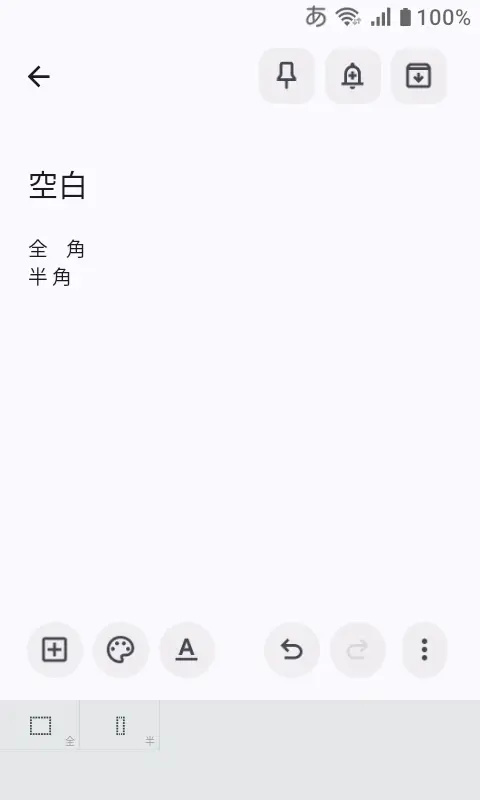 空白の全角スペース半角スペースは日本語/英語の入力時にキーを押下すると入力できます。