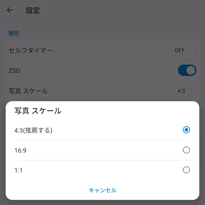 また、デフォルトは1:1ですがカメラアプリでは一般的な4:3が推奨されているので、迷うようであれば4:3を選択しておくと良いでしょう。