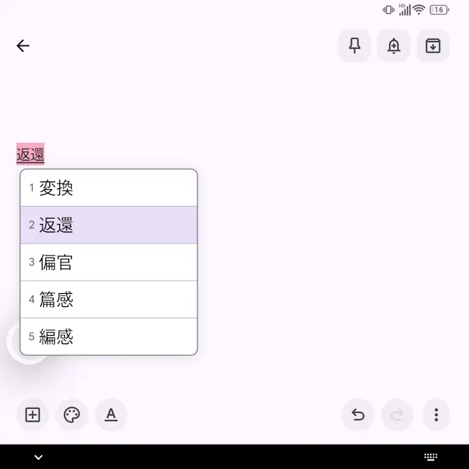 ひらがなで入力すると変換候補が表示されるのでタップします。