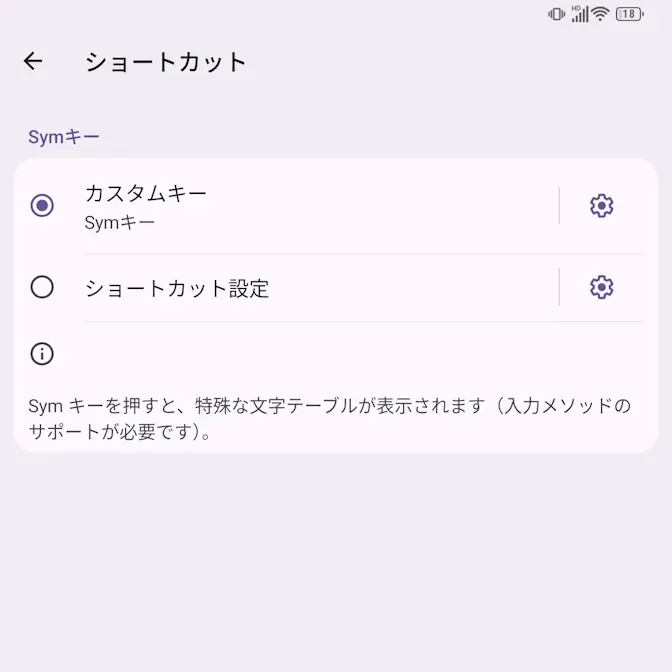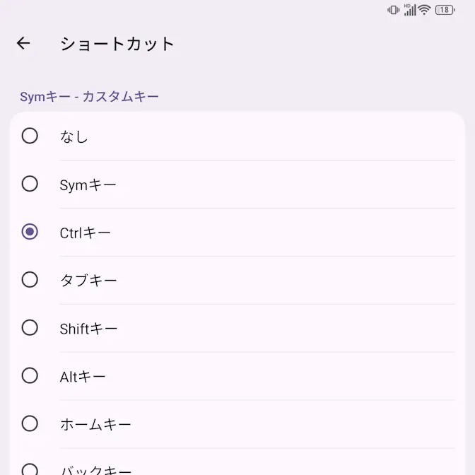 Symキーよりカスタムキーを選択し、よりCtrlキーを選択します。