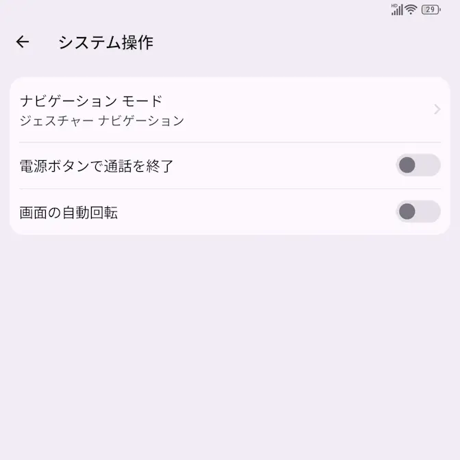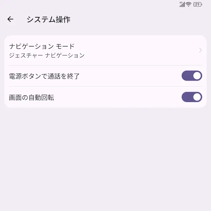 システム操作より電源ボタンで通話を終了をタップしてオン/オフを切り替えます。