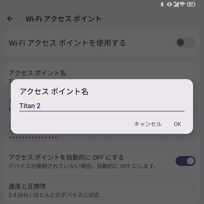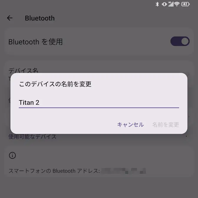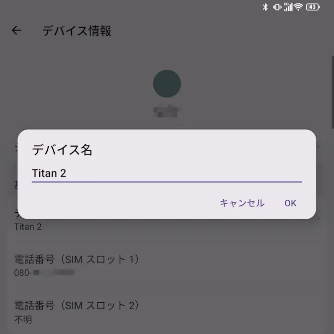 Androidスマートフォンのデフォルトは機種名が表示されるようになっているため、Titan 2はTitan 2と表示されるので、同じ機種を持っているユーザーでは同じ名前が表示されてしまいます。
