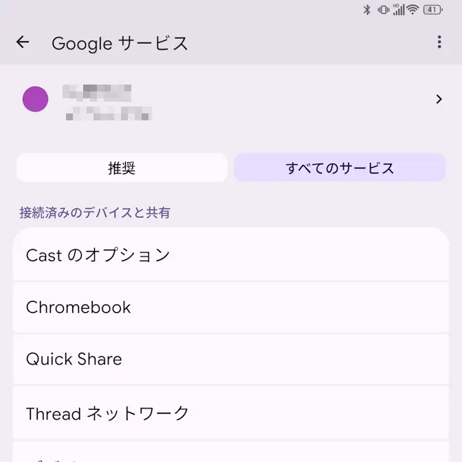 設定のGoogleよりすべてのサービス>Quick Shareをタップします。