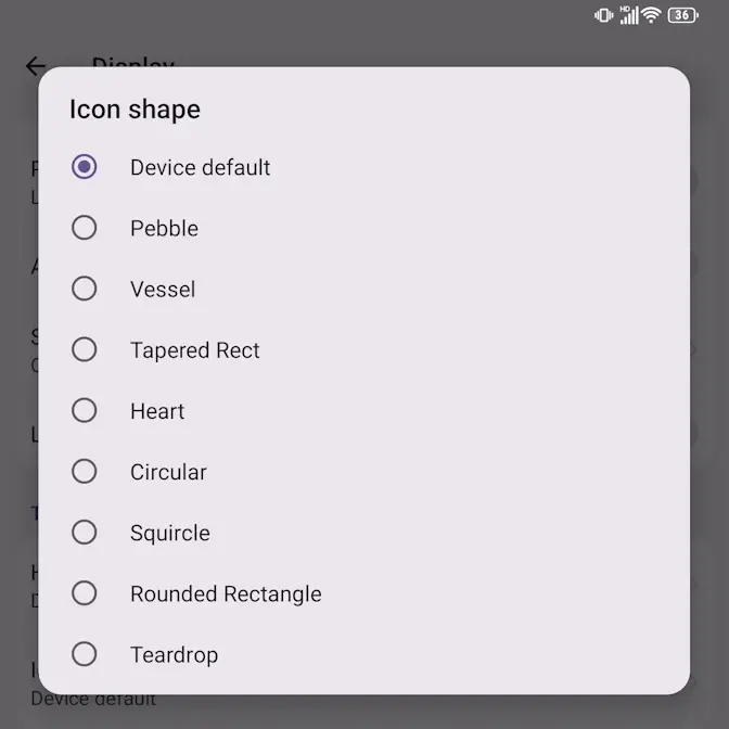 設定ディスプレイよりアイコンの形状をタップします。