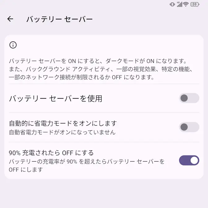 バッテリーセーバーを“オフ”にするやり方は以上です。