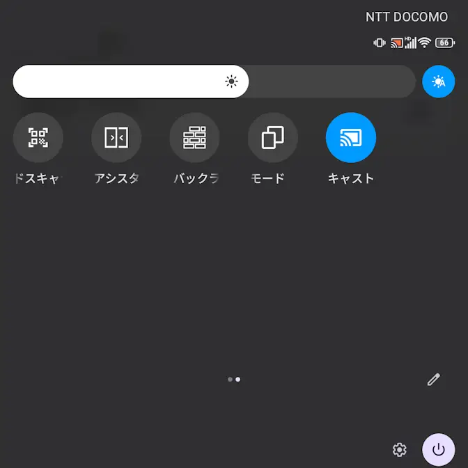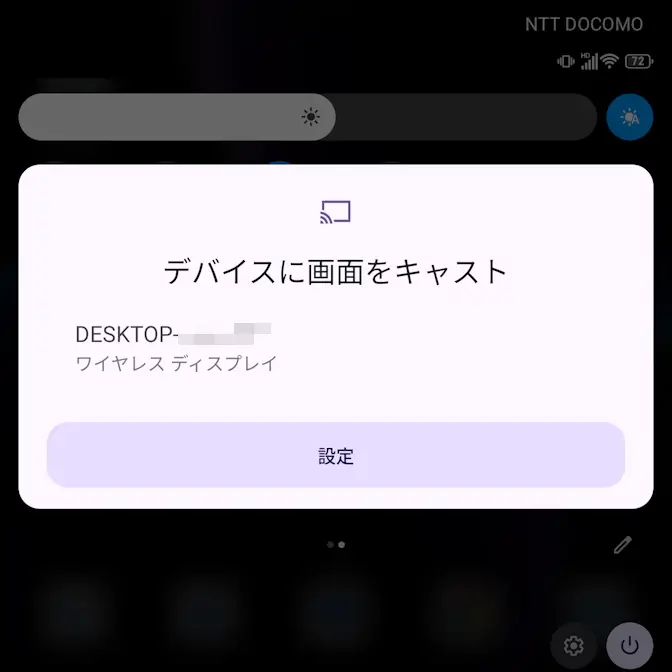 クイック設定ツールキャストより検索されたワイヤレスディスプレイをタップします。
