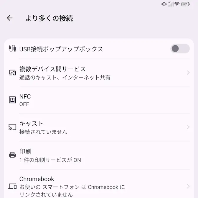 設定より多くの接続>キャスト>接続済み>よりワイヤレスディスプレイのオプションを変更します。