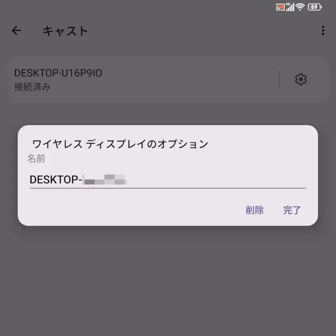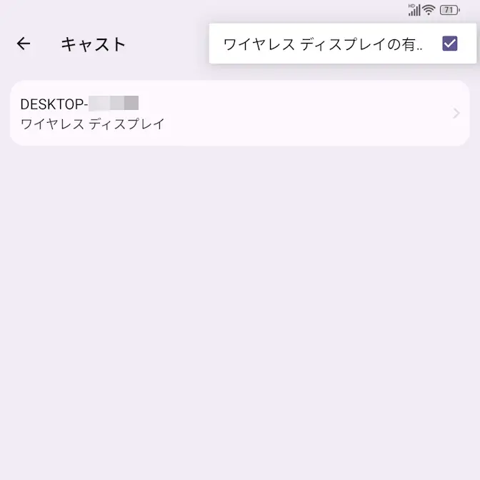 キャストのよりワイヤレスディスプレイの有…チェックします。