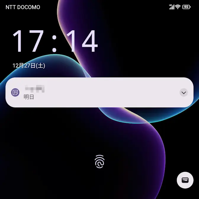 Android 15のロック画面に表示される時計は、時/分が縦に2列で並んだダイナミッククロックで表示されますが、通知があると左上に小さい時計で表示されます。