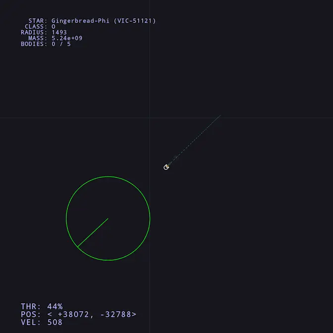 空間を漂って色のついた線を見つけたら線に沿って宇宙船を誘導し、大きな円に宇宙船の2本の足を円の方に向けて着陸させます。