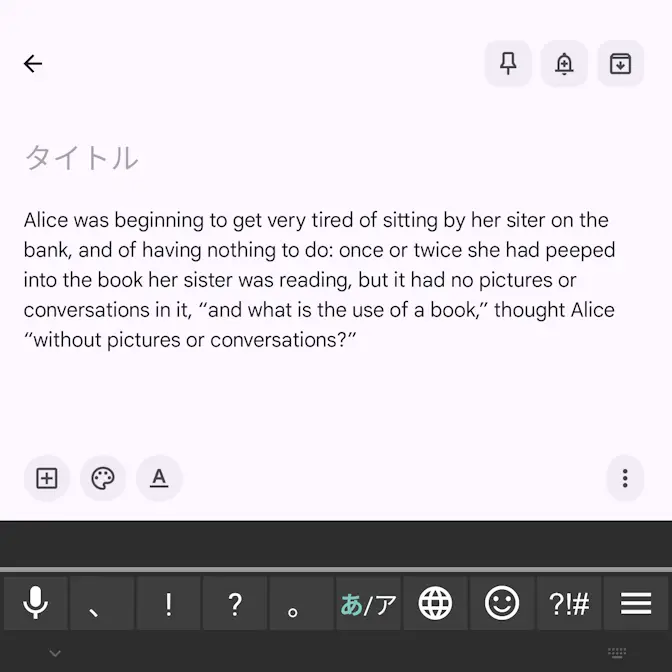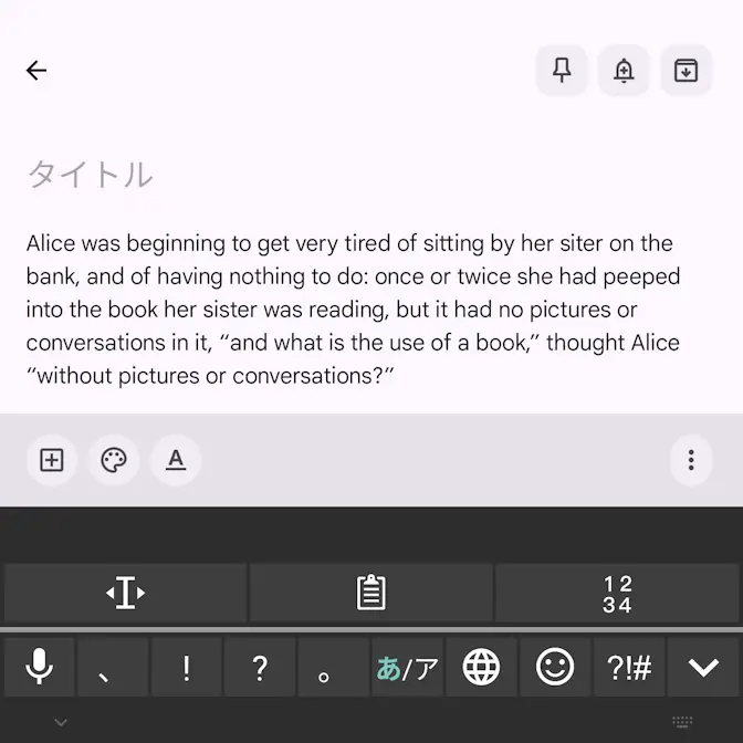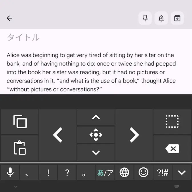 Titan 2のQWERTY物理キーボードには[←][→]のようなカーソルを動かすキーが搭載されていないですが、キーボードをスワイプして「カーソルを上下左右に動かす」と言うことができます。また、画面キーボードを表示しても操作できます。