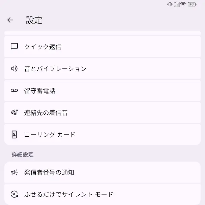 Unihertz Titan 2→電話アプリ→設定Unihertz Titan 2→電話アプリ→設定→ふせるだけでサイレントモード