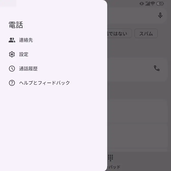 Unihertz Titan 2→電話アプリ→ホームUnihertz Titan 2→電話アプリ→サイドメニュー