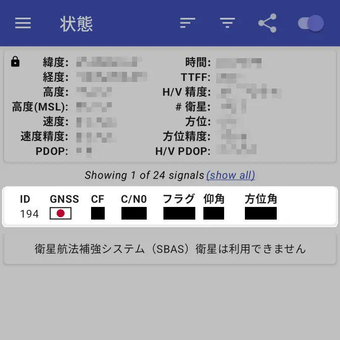 絞り込むにはフィルターアイコンより準天頂衛星システム(日本)を