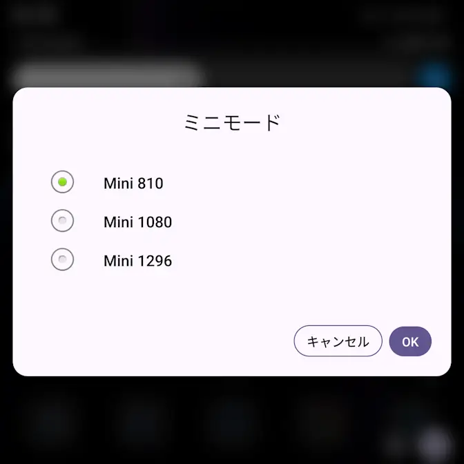 クイック設定ツールミニモードを長押ししMini 810Mini 1080Mini 1296を選択しOKをタップします。