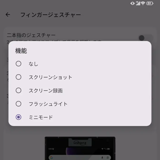 Unihertz Titan 2→設定→ジェスチャー→フィンガージェスチャーUnihertz Titan 2→設定→ジェスチャー→フィンガージェスチャー→機能