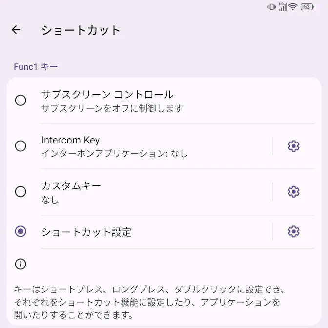 Unihertz Titan 2→設定→ショートカット→Func1キーUnihertz Titan 2→設定→ショートカット→Func1キー→ショートカット設定