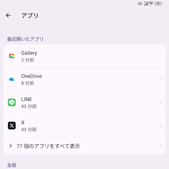 設定のアプリより〇個のアプリをすべて表示をタップします。