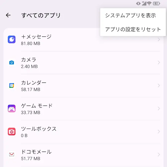 すべてのアプリの︙よりシステムアプリを表示をタップします。