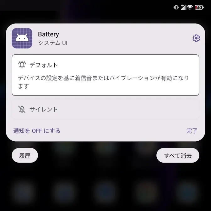 Android 15を搭載したAndroidスマートフォンであるTitan 2では、バッテリー残量が15%と10%の時に【バッテリーセーバーをONにしますか?】と通知が表示されますが、これは[システムUI]の設定を変更すればオフにできます。