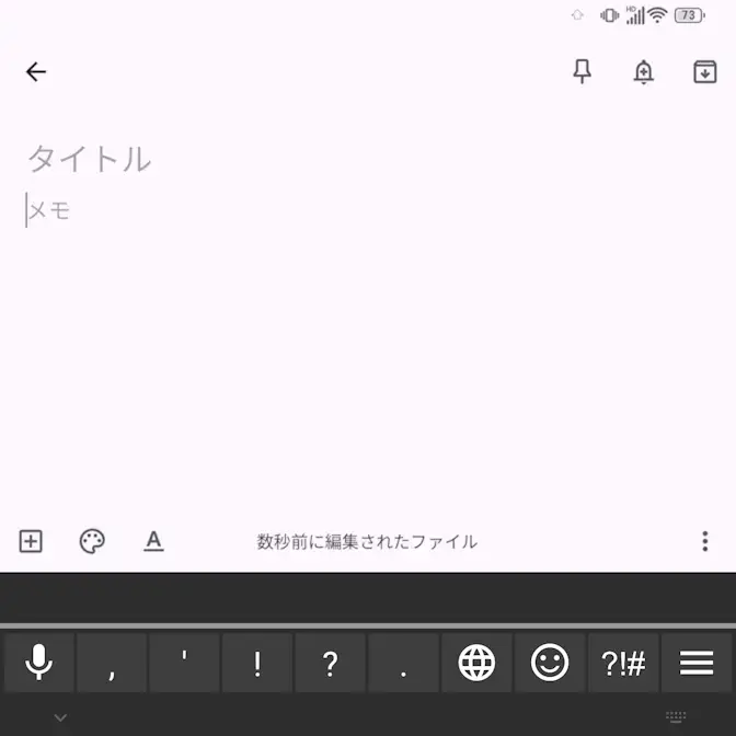 文字入力の状態でをタップして日本語に切り替え、QWERTY物理キーボードのを押下します。