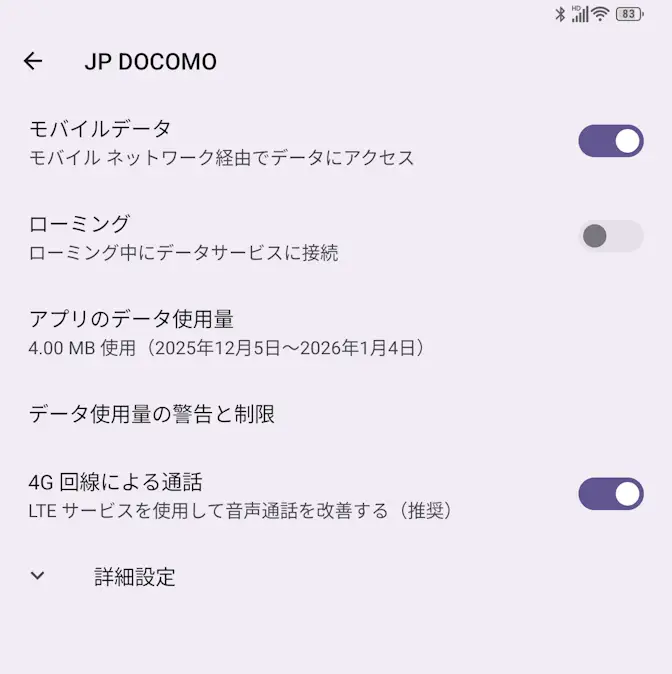 SIMのSIMスロット〇>より詳細設定をタップします・