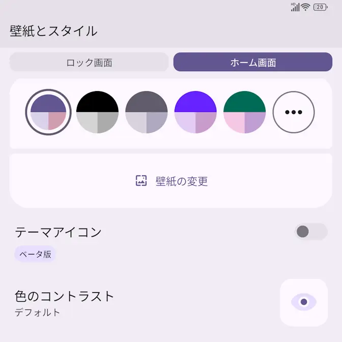 壁紙の変更はホームアプリによって異なり、プリインストールされたデフォルトのQuickstepでは壁紙とスタイルから操作します。