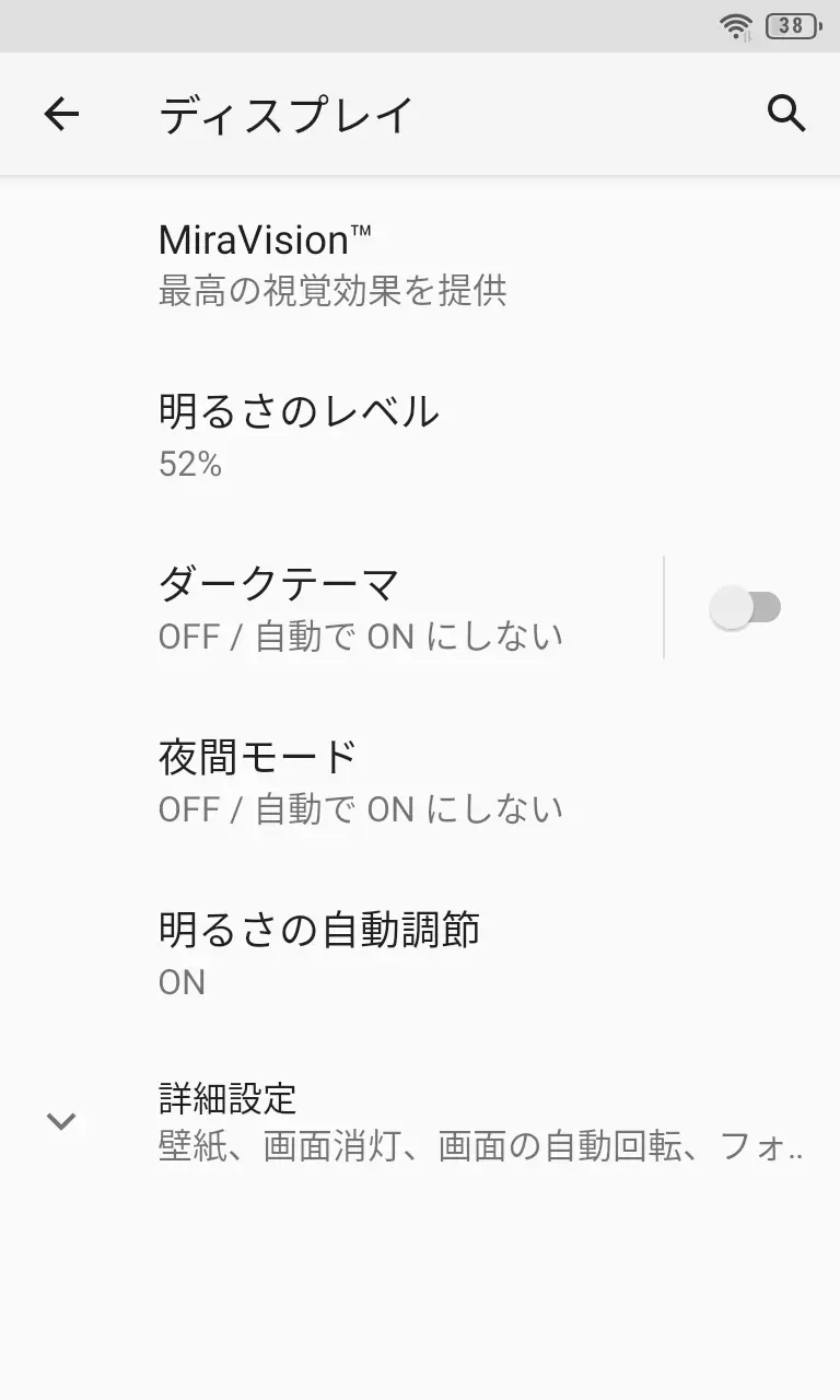Androidスマートフォンには【明るさの自動調節】が搭載されていますが、Titan Slimはデフォルトでオフとなっているので【オン】に切り替えれば自動調節されるようにできます。