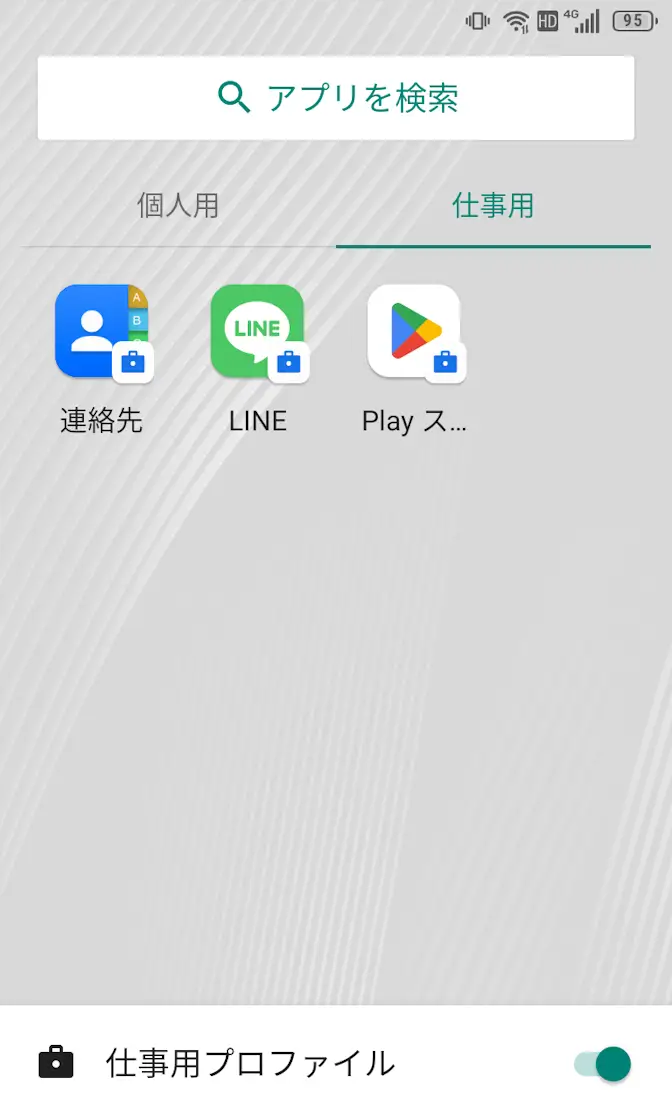 仕事用プロファイルとは、仕事用のアプリやデータを個人用のアプリやデータと分けることができる機能です。