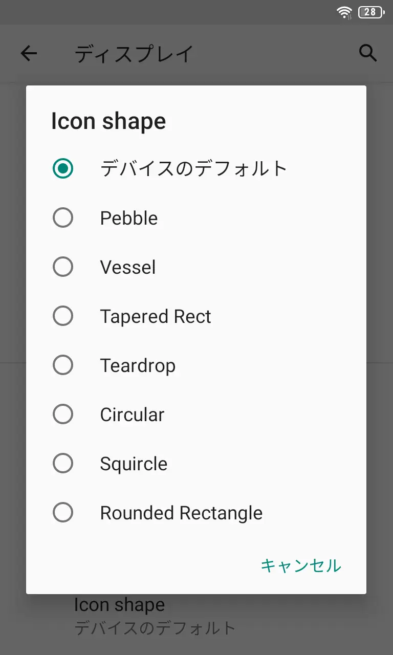 ディスプレイのIcon ShapeよりPebble/Vessel/Tapered Rect/Teardrop/Circular/Squircle/Rounded Rectangleのいずれかを選択します。