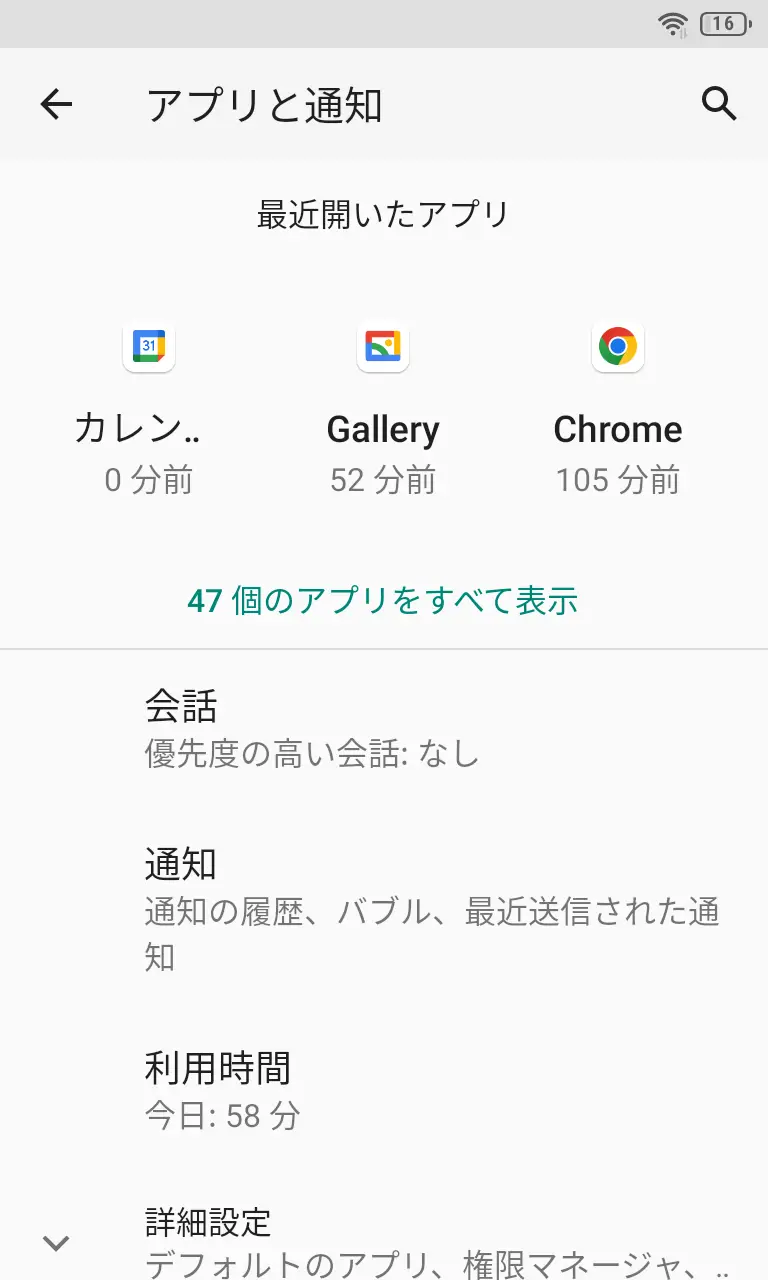 設定のアプリと通知より詳細設定をタップします。