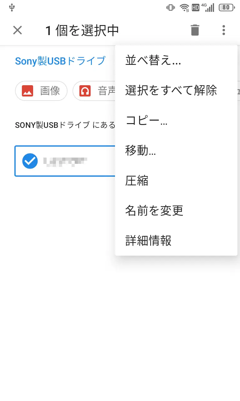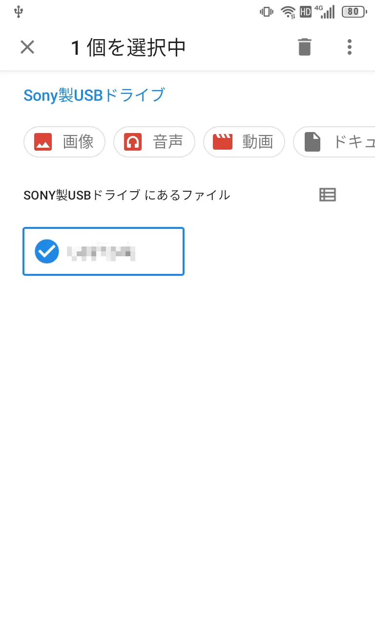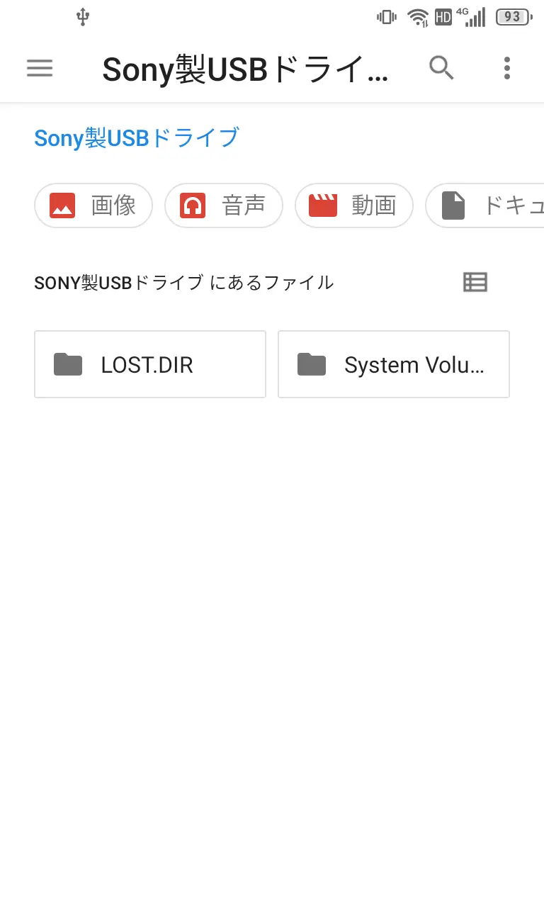 内蔵ファイルマネージャーで〇〇製USBドライブが表示されます。