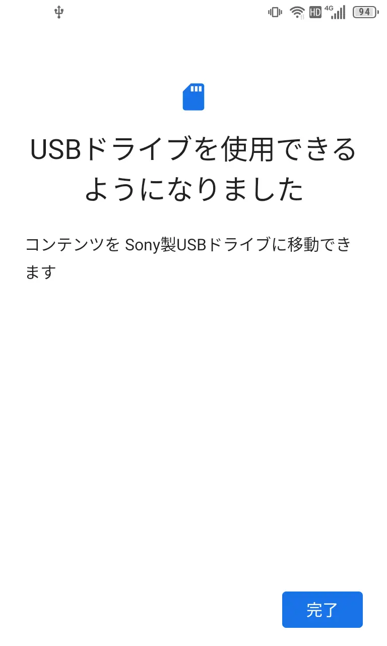 外部ストレージに保存されたデータがすべて削除されても良ければ、通知をタップしてUSBドライブをフォーマットをタップするとフォーマットできます。