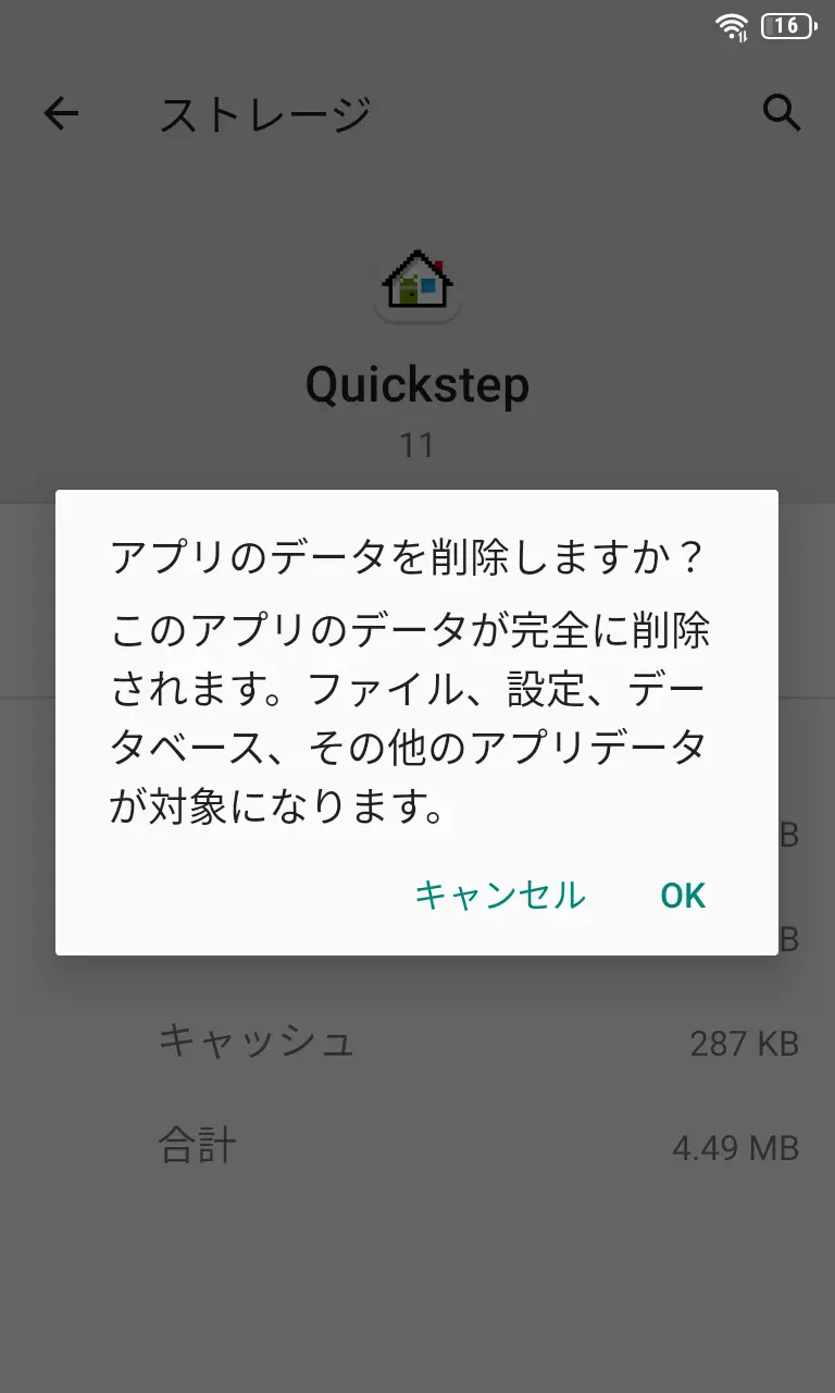 ちなみに、初期状態にリセットすることで全てを削除する手もありますが、これはQuickstepアプリを初期化するため他の設定などもリセットされるので、購入直後などに多くのアプリをダウンロード&インストールした場合には有効です。
