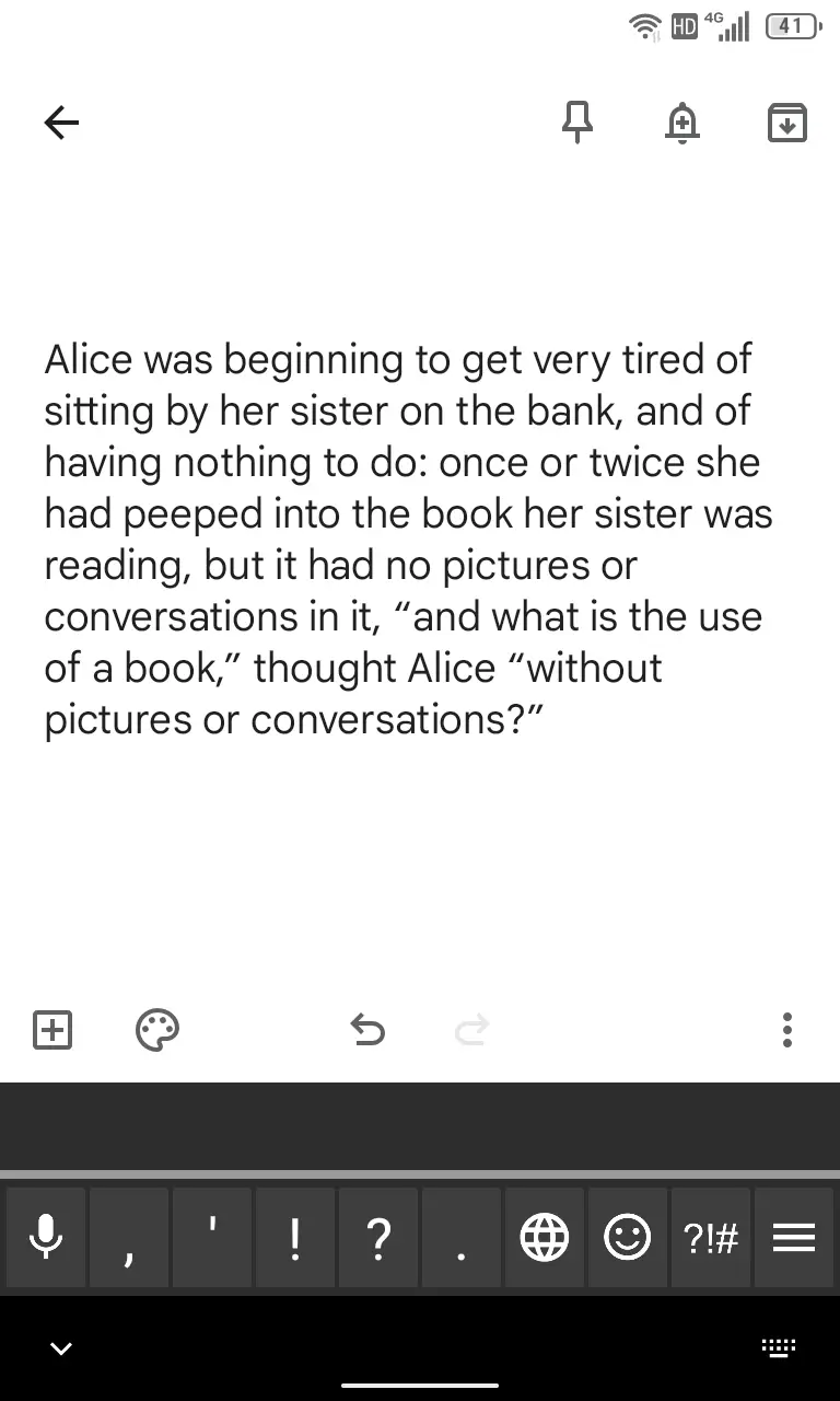 しかし、Titan Slimに搭載されているQWERTY物理キーボードには◀/▶が無く、かつデフォルトで表示される1行の画面キーボードにも見当たりません。