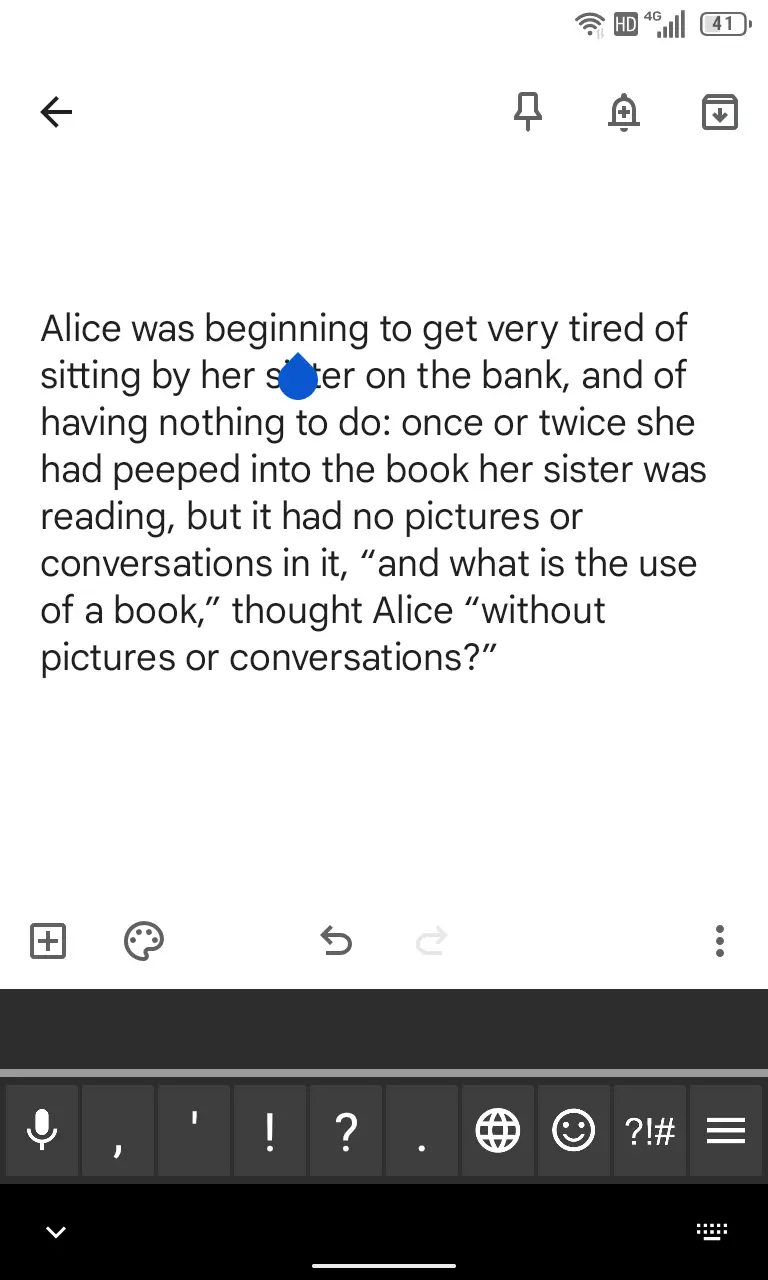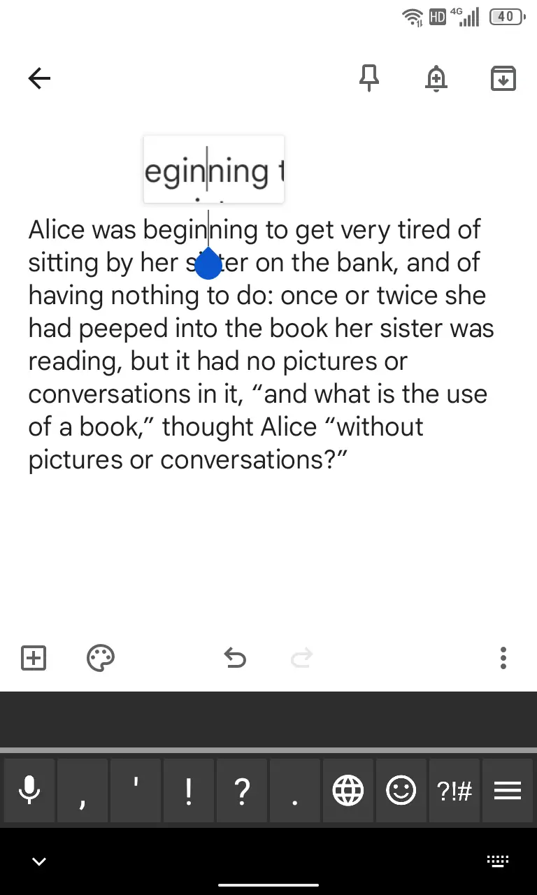 テキストをタップしカーソルの青い●を表示します。
