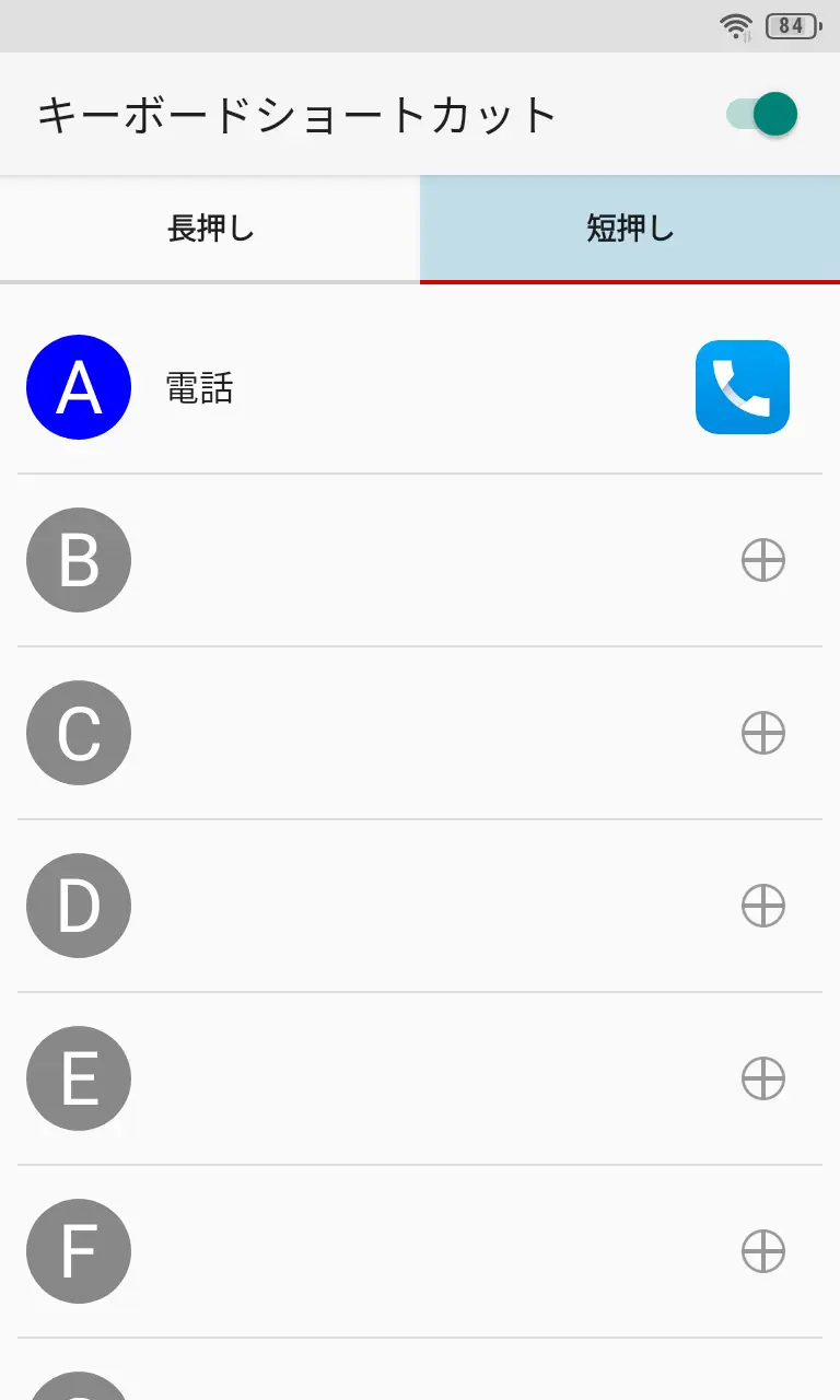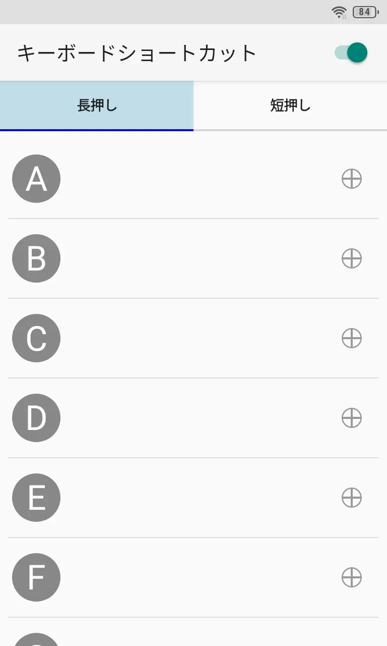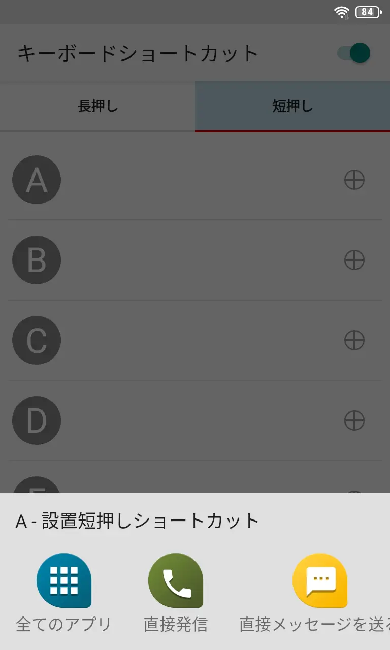 キーボードショートカットの長押し/短押しよりAからZのいずれかをタップします。