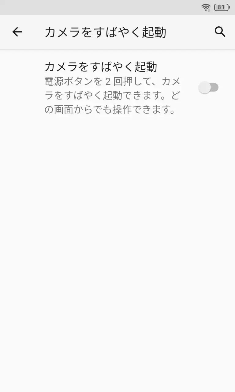 Titan Slimでは「電源ボタンを2回押下する」と【カメラアプリ】を起動できます。どの画面でも操作できるので、ロック画面でも操作できてしまうことから誤操作で勝手にカメラが起動してしまうことが多ければオフに切り替えると良いです。