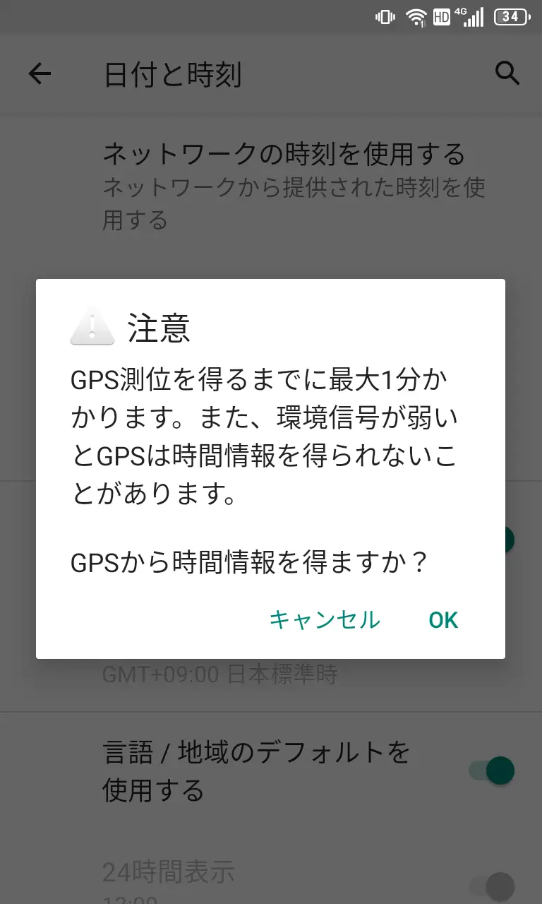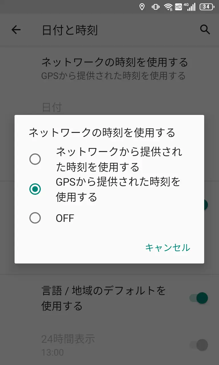 日付と時刻のネットワークの時刻を使用するよりGPSから提供された時刻を使用するを選択します。