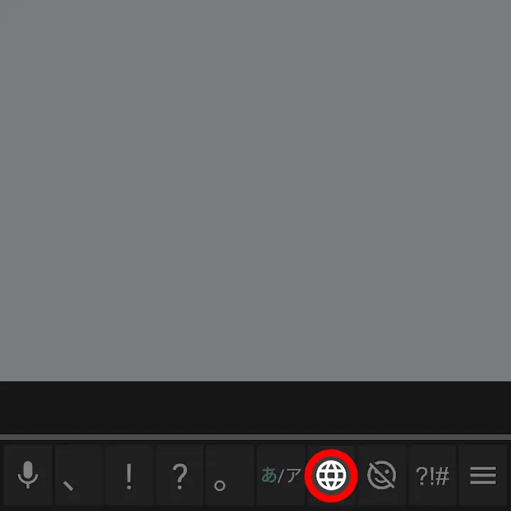 文字入力の状態で地球儀アイコンをタップし、入力を日本語に切り替えます。