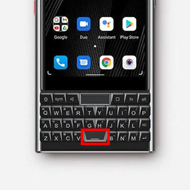 QWERTY物理キーボード下の中央にあるを押下します。