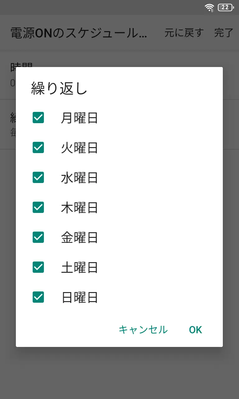この機能は設定のスケジュールに沿って電源ON/OFFより時間と繰り返しを指定することができます。
