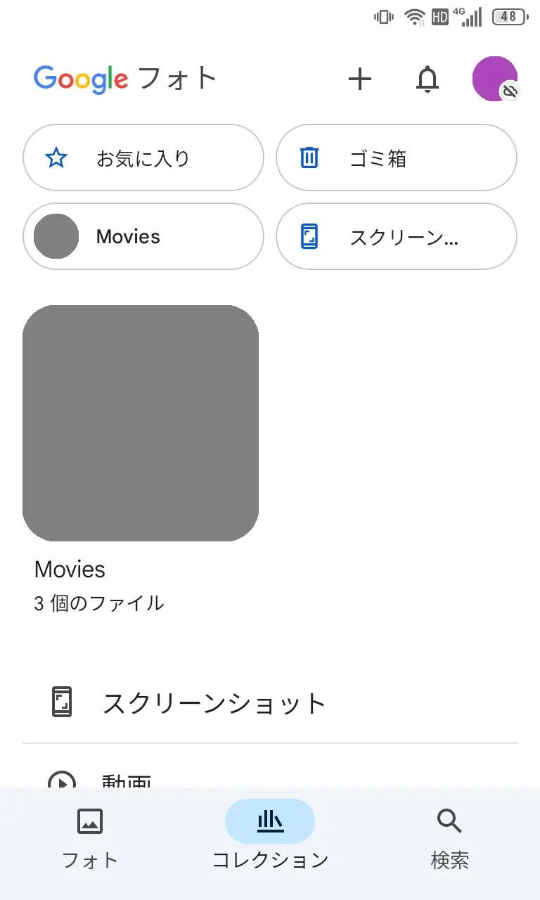 プリインストールされているフォトアプリで閲覧する場合にはコレクションMoviesより参照できます。