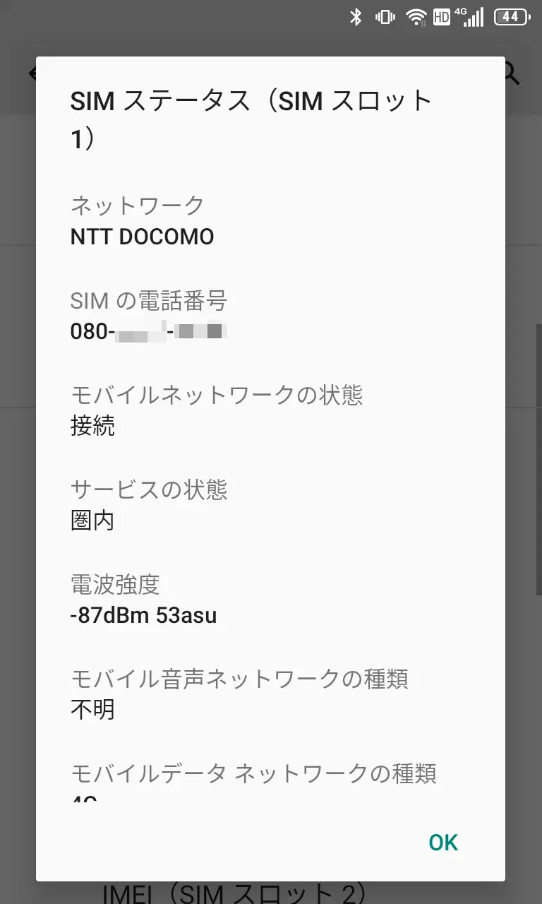 「覚えていない」または「確認したい」と言う場合、設定よりSIMスロット1/SIMスロット2の情報を表示すると確認できます。