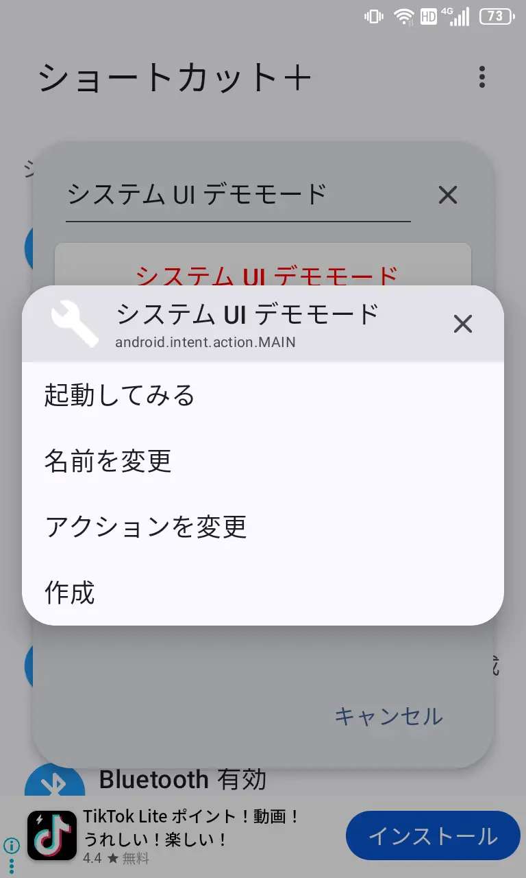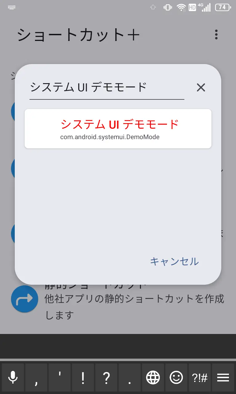Androidアプリ→ショートカット+Androidアプリ→ショートカット+→アクティビティ→システムUIデモモード
